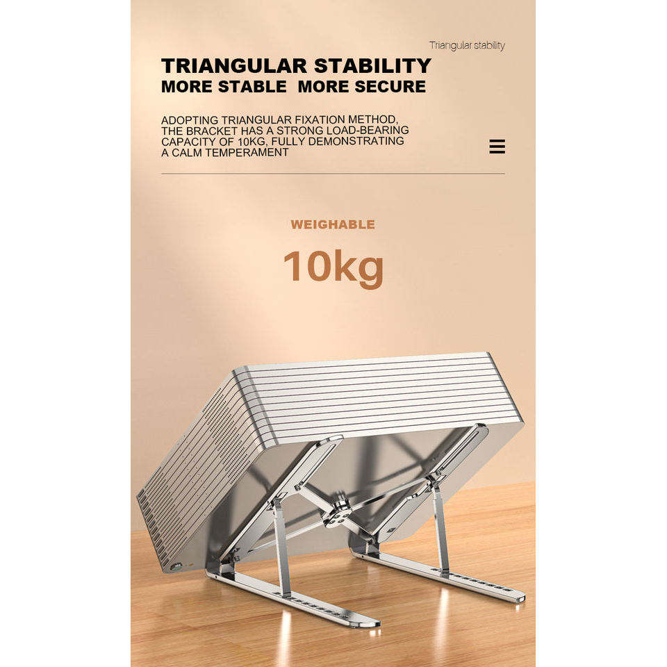 Ergonomic Luxury 10-Angles Height-Adjustable Foldable Aluminium Tripod Laptop Stand Portable Ventilated Design