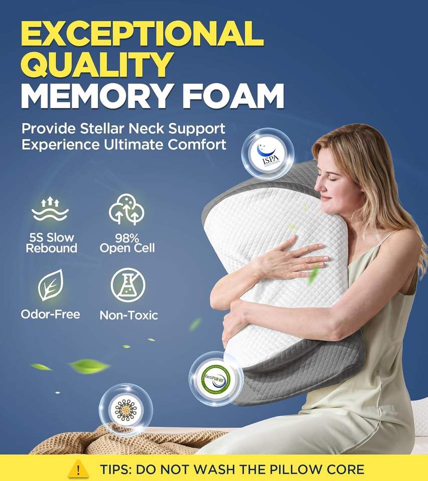 Ergonomic Orthopedic Bed Pillow Neck Pillow Cervical Memory Foam Pillows for Pain Relief Sleeping