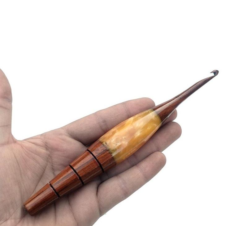 Ergonomic Wooden Crochet Hook Handcrafted Gift for Knitters Unique Crochet Hook Knitting Accessory Golden Resin Crochet