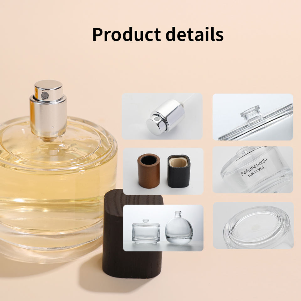 Eric Favourite Wholesale Luxury 60ml 70ml Clear Transparent Round Perfume Bottle With Wooden Lid Box Packaging