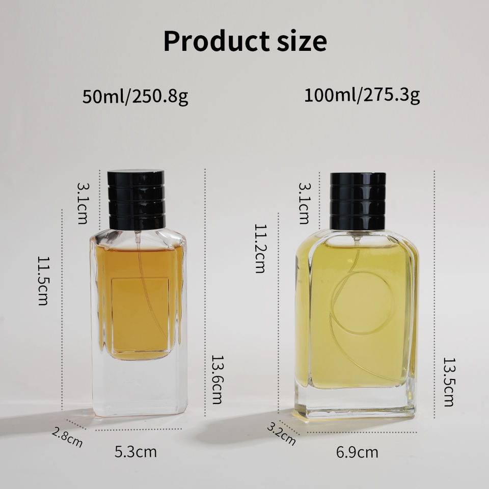 Eric Luxury Liquid Fragrance Container 50ml 100ml Flat Square Spray Perfume Empty Bottle Glass With Black Lids