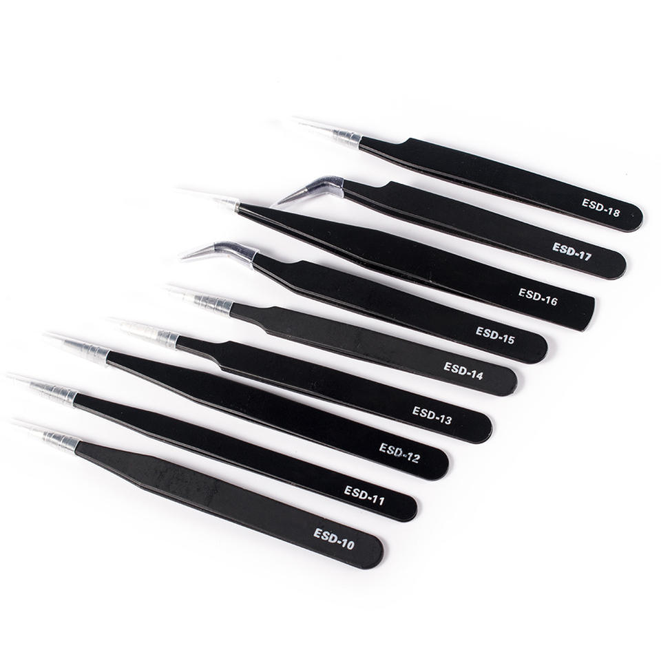 EsD Series Black Tweezers Set ESD 15 18 19 16 Industrial Grade Electronic Repair Tools