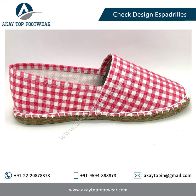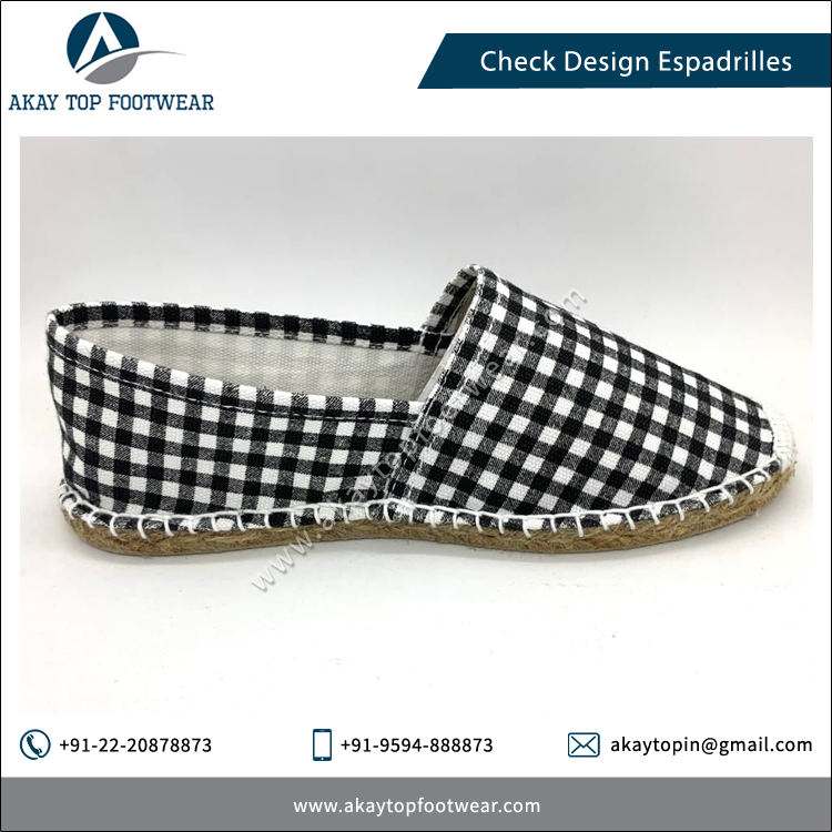 No Lining Check Design Espadrilles Flat Shoes Comfortable Bulk Stock Slip-On Light Weight Summer Accessory Trusted Supplier