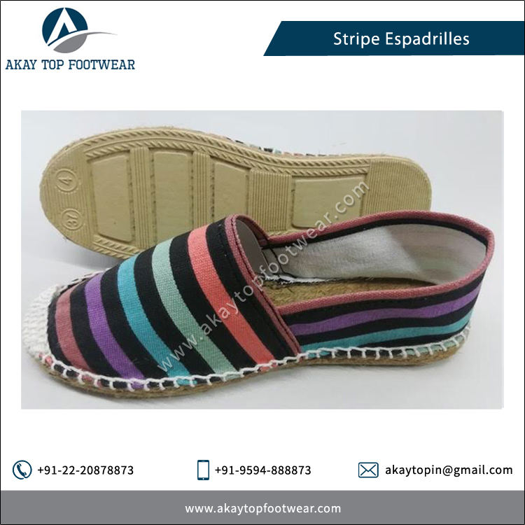 High Quality Summer Stripe Pattern Espadrilles Flat Shoes Printed Lightweight Slip-On with Slip-On Closure Direct From Supplier