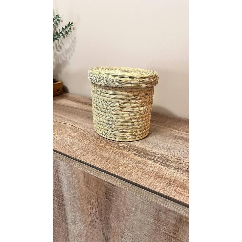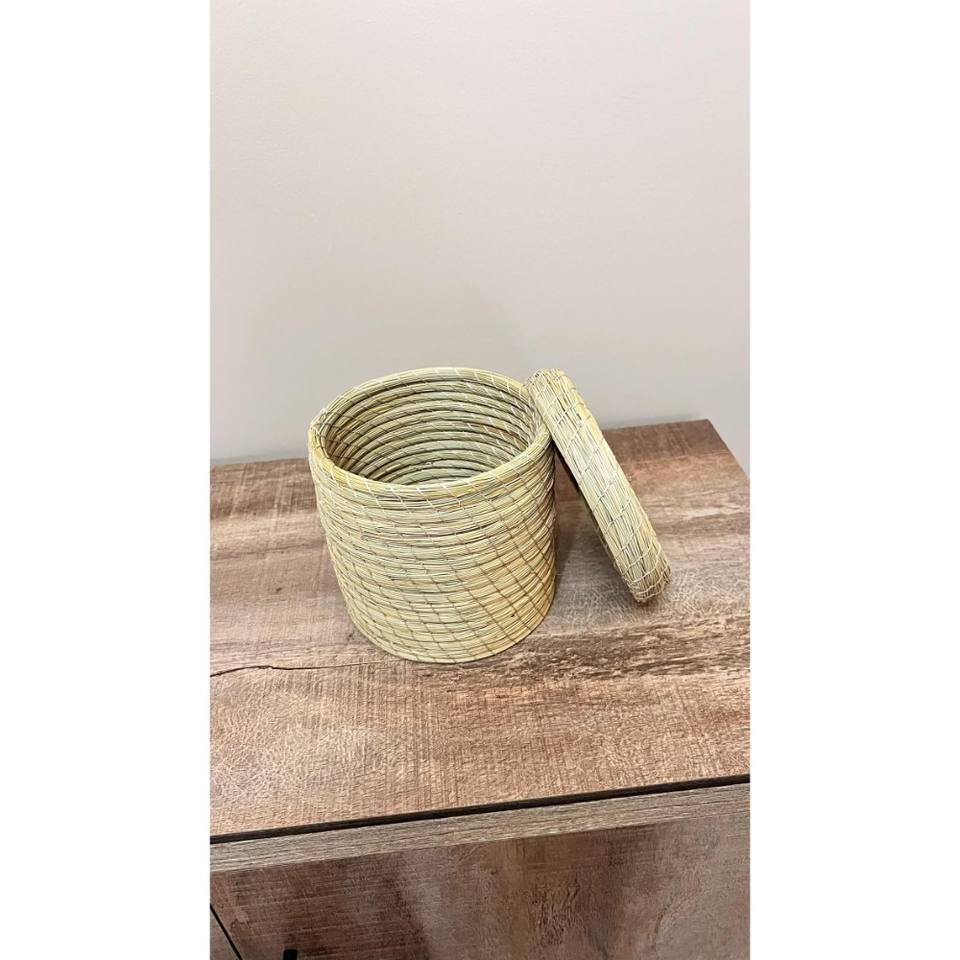 Esparto Grass Basket With Lid Rustic Storage Container Natural Boho Decor Eco-Friendly And Durable Handmade Box 6 Inch Depth