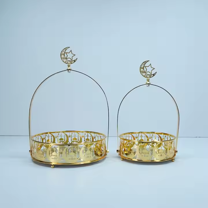 Essential Modern Ramadan Decorative Iron Moon Star Handmade High Quality Cake Serving Tray Party Tableware Table Decoration