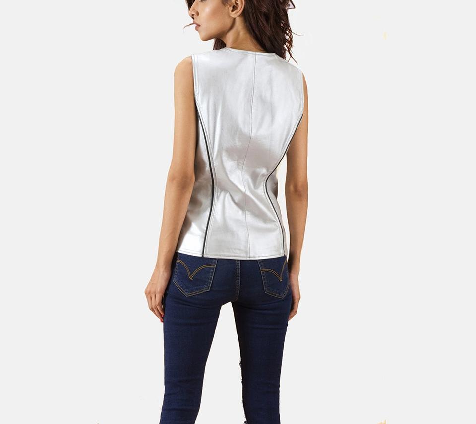 New Essential Women's & Girls Trendy Leather Vest Customizable New Motorbike Jacket with Stripe Rivet & Camouflage Decorations