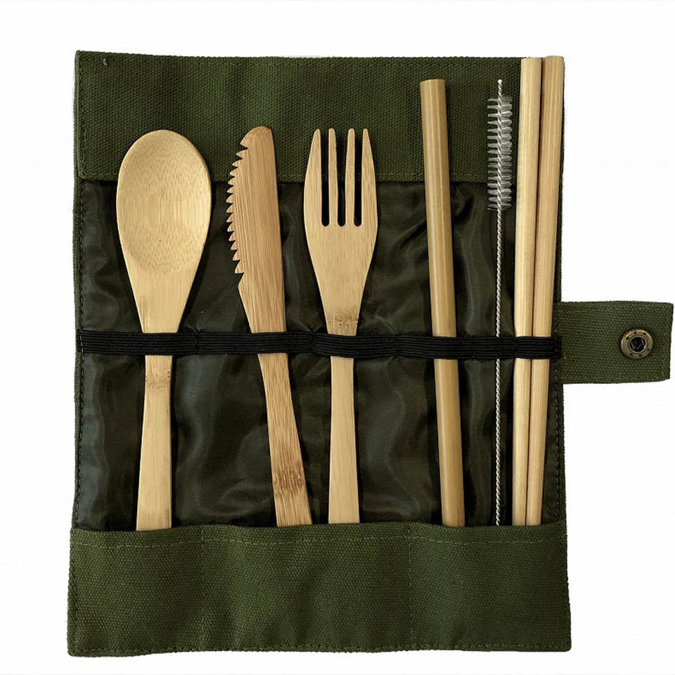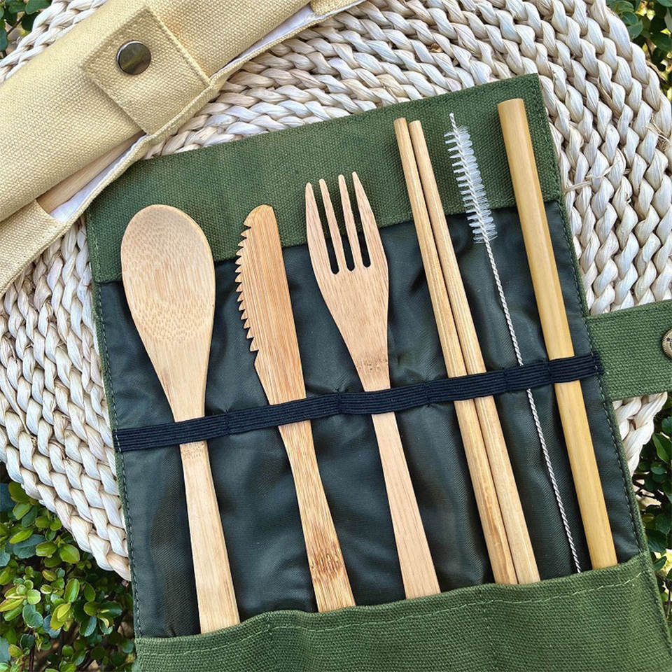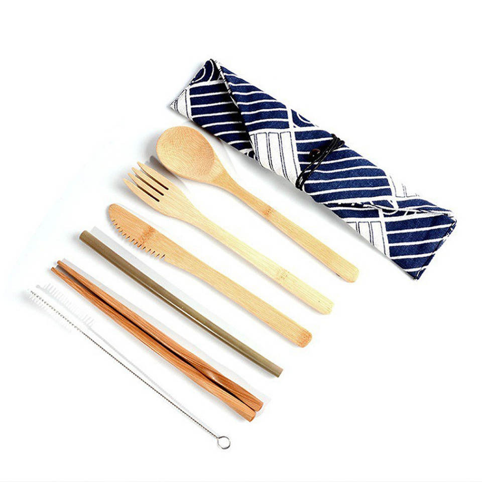 Estick Eco-Friendly Reusable Bamboo Cutlery Set Unique Natural Vintage Travel Utensils with Cloth Bag for Camping Wholesale