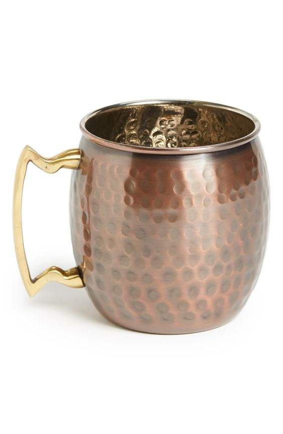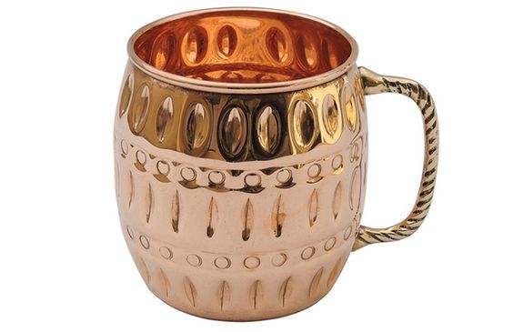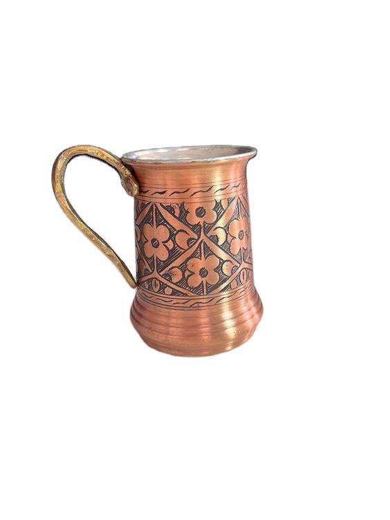 Etched Flower Modern Design Copper Beer Mug Natural Hammered with Brass Handle Matt Finished Metal Barware