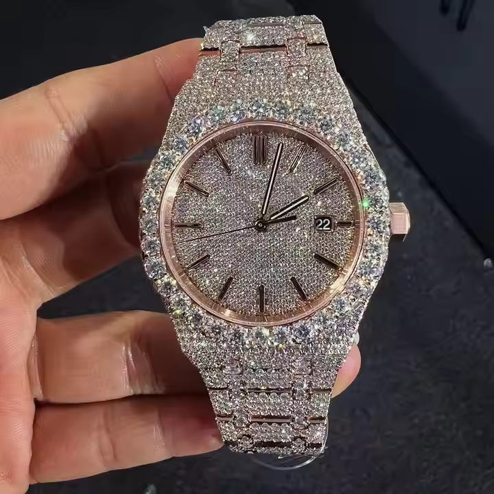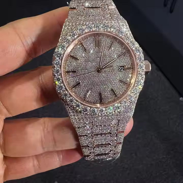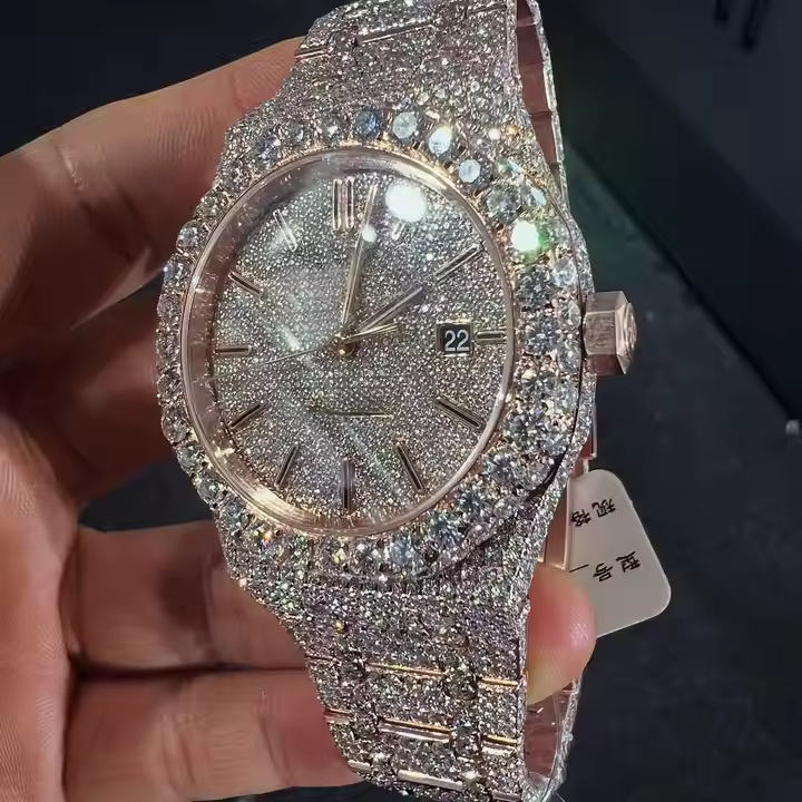 EternaDrive Lab Grown Diamond Stainless Steel Mechanical Watch for Men Luxury Automatic Movement Glass Iced Skeleton Design
