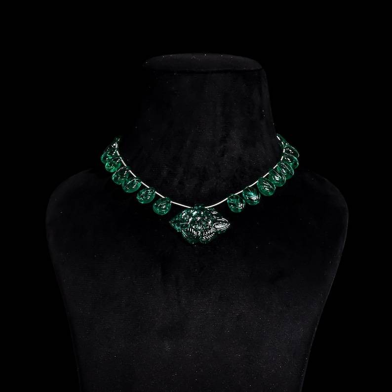 Keywords:Eternal Bond Beautiful Emerald Carved Love Necklace Green Luxe Emotion