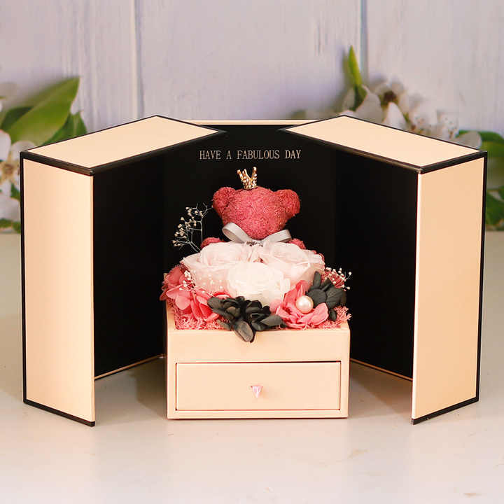 Eternal Flower Double-open bear jewelry box Hot sale Mother's Day Valentine's Day Gift