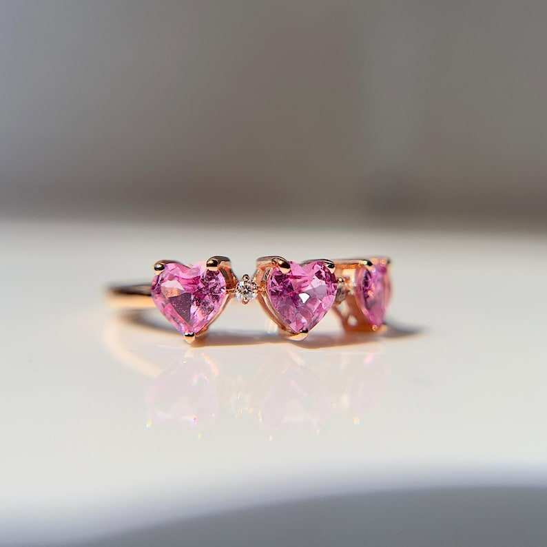 Eternal Love Three Heart Pink Sapphire Zircon Stacking Ring 18K Solid Rose Gold Plated Fine Jewelry Gift
