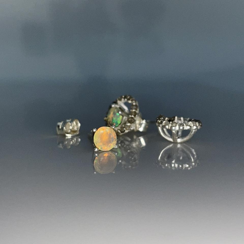 Ethiopian Natural Opal Diamond Earrings Stainless Steel Gold Plated Faceted Gemstone Jewelry for Children