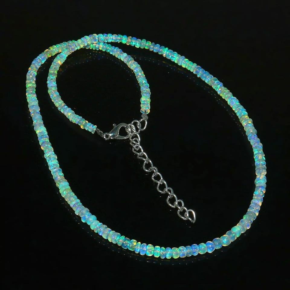 Ethiopian Natural Welo Fire White Opal Necklace 18-Inch Polished Rondelle Beads 3-6 mm Smooth Loose Gemstones