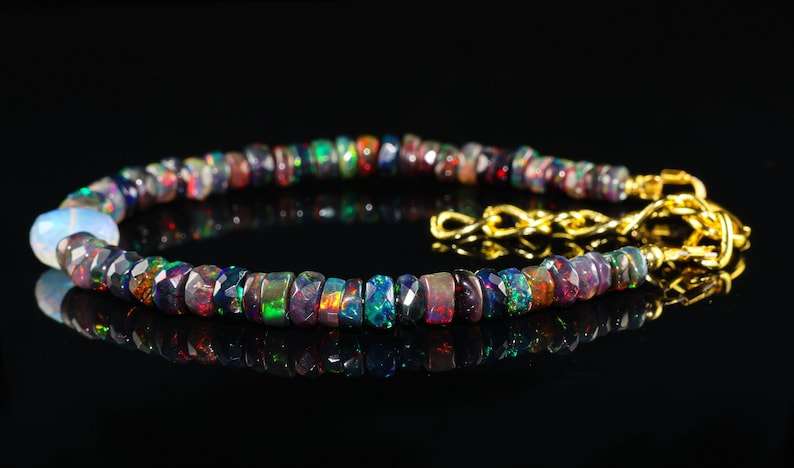 Ethiopian Opal Beaded Bracelet Faceted Rondelle Gemstone 925 Sterling Silver 14K Gold Plated Handmade Jewelry
