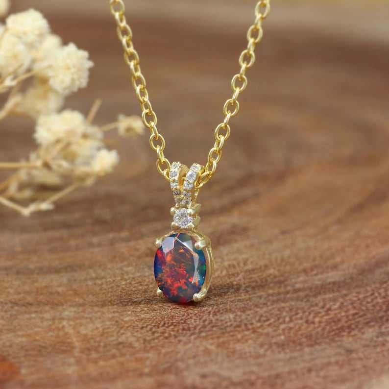 Ethiopian Opal Pendant Necklace For Women Oval Black Opal Anniversary Gift Sterling Silver Gold Plated