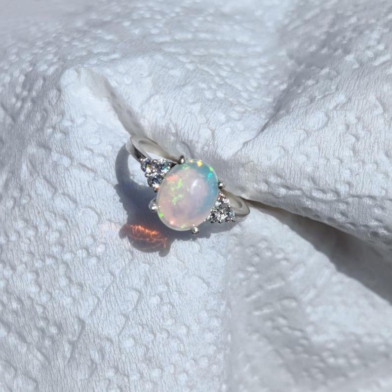 Ethiopian Opal Ring Handmade 925 Sterling Silver Engagement Fine Jewelry Vintage Style Freshwater Pearl Diamond Third Party