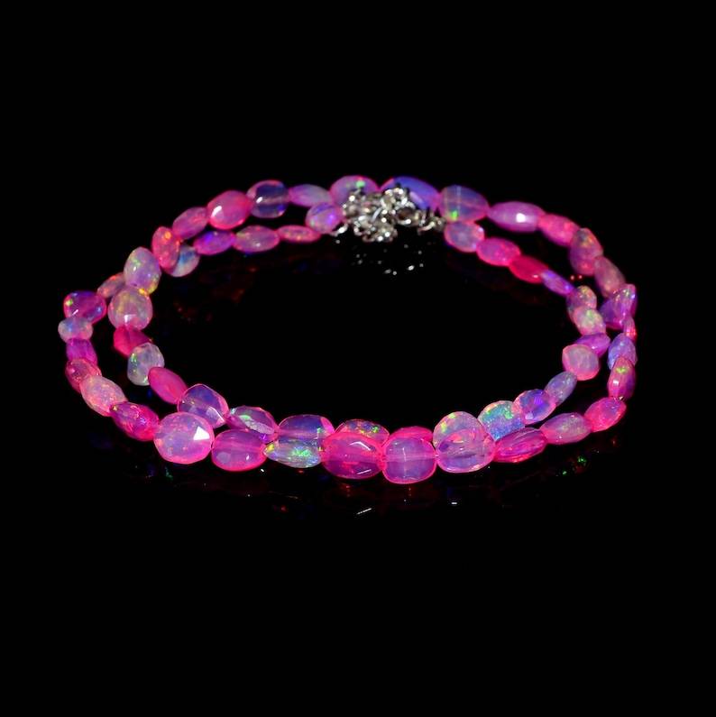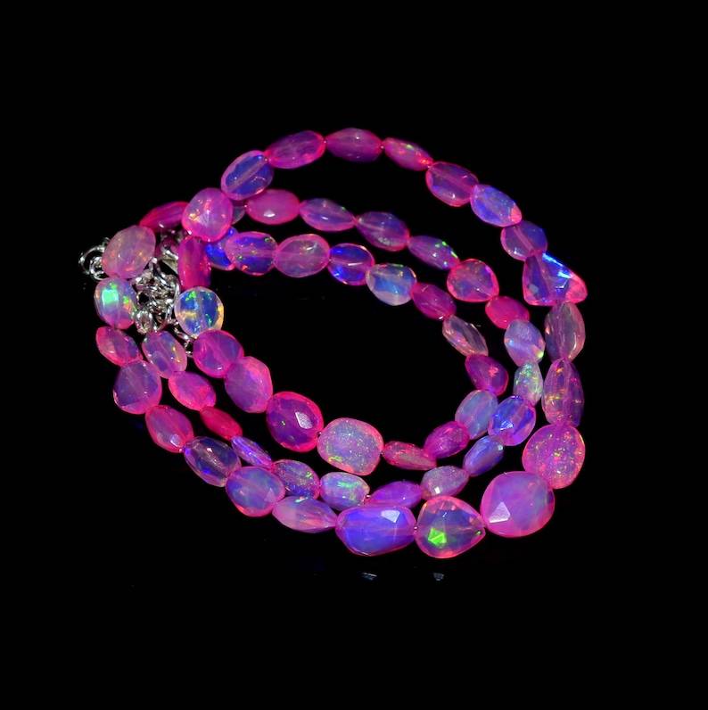 Keywords:Radiant PINK Opal Beads Necklace Glowing Iridescent Stone With Play