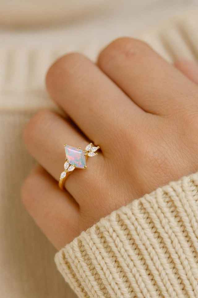 Keyword:White Opal 925 Sliver Made With Ethiopian multi fire White Opal Ring