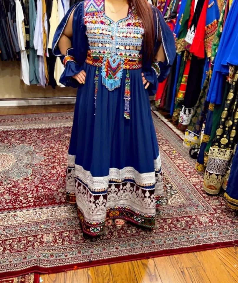 Ethnic Afghan Kuchi Handmade Tribal Traditional Women Afghani Dress Long Size in Multy Color for Pashtun Culture W/S 639