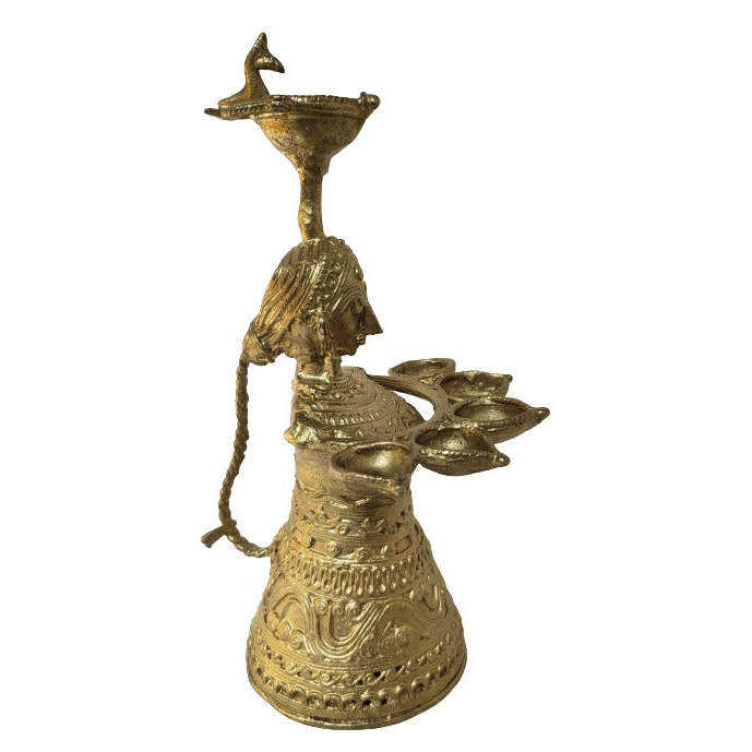 Ethnic Art Dhokra Diya Handcrafted Brass Hanging Decor 21cm Size for Weddings Home Enhancement Puja Room & Meditation Area