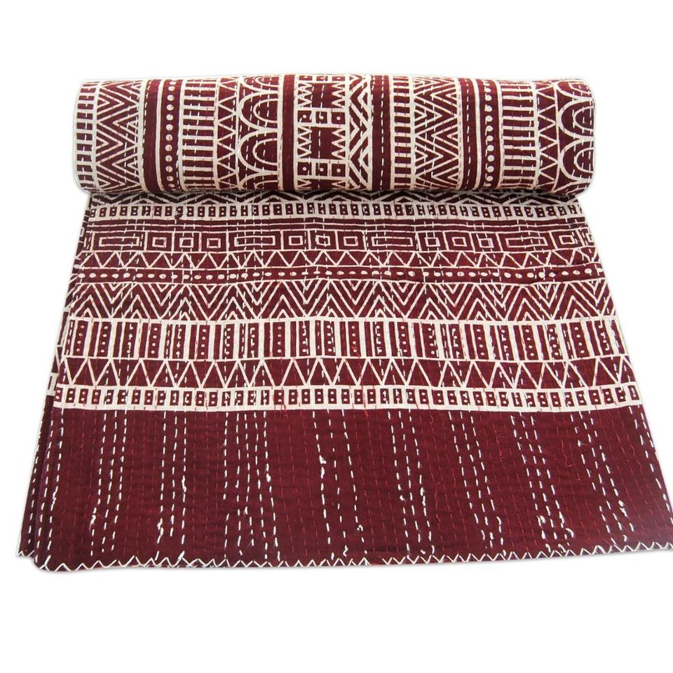 Ethnic Craft Kantha Quilt Handmade Indian Queen Size Cotton Reversible Bedspread Multi-Color Blanket Throw Home Wholesale 400TC