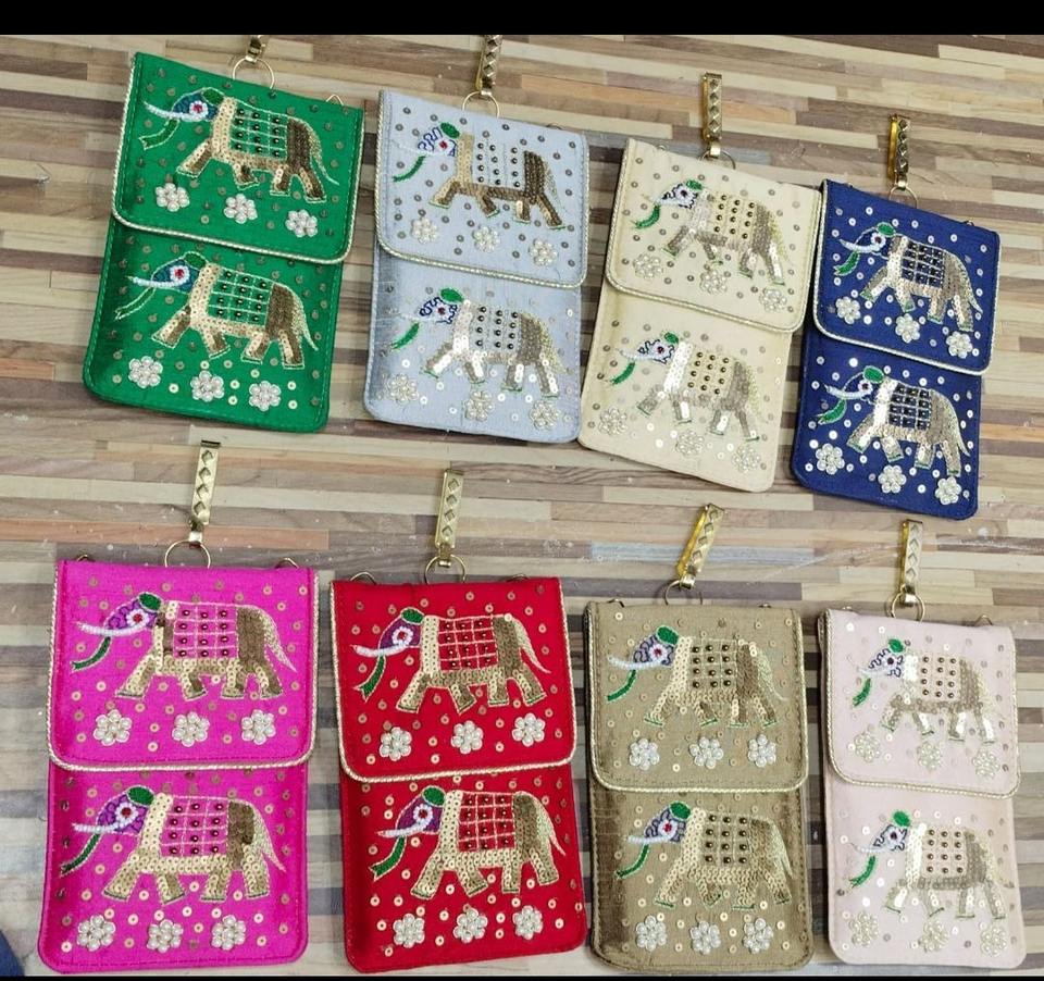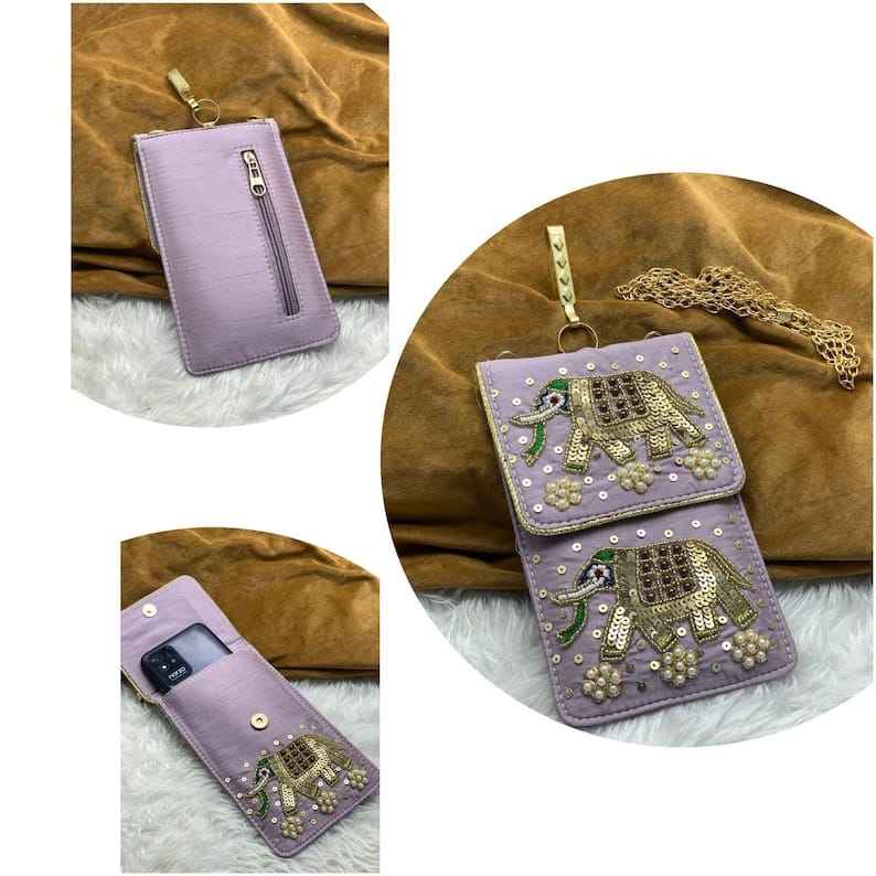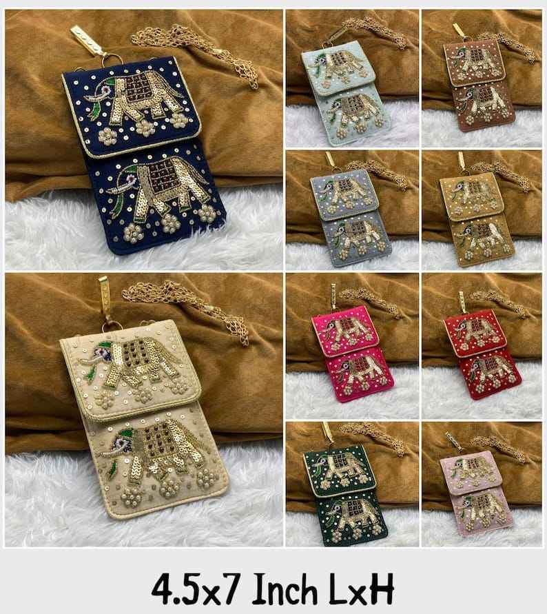 Ethnic Embroidered Elephant Design Mobile Pouch Velvet Phone Bags with Sequin Work & Zipper for Gift for Women Wedding Favors