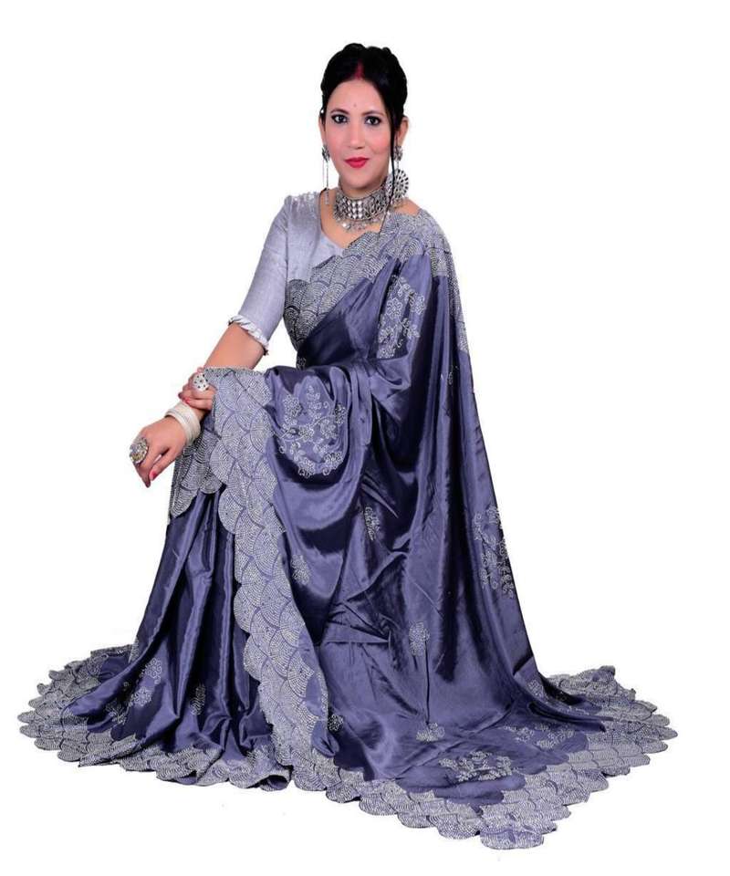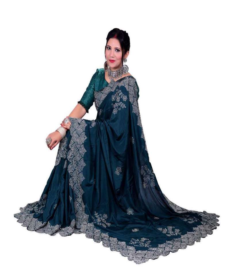 Ethnic Garments Ladies Wear Vichitra Silk Heavy Embroidery Work Saree Indian Blouse Women Adults India & Pakistan Support 500 Ethnic