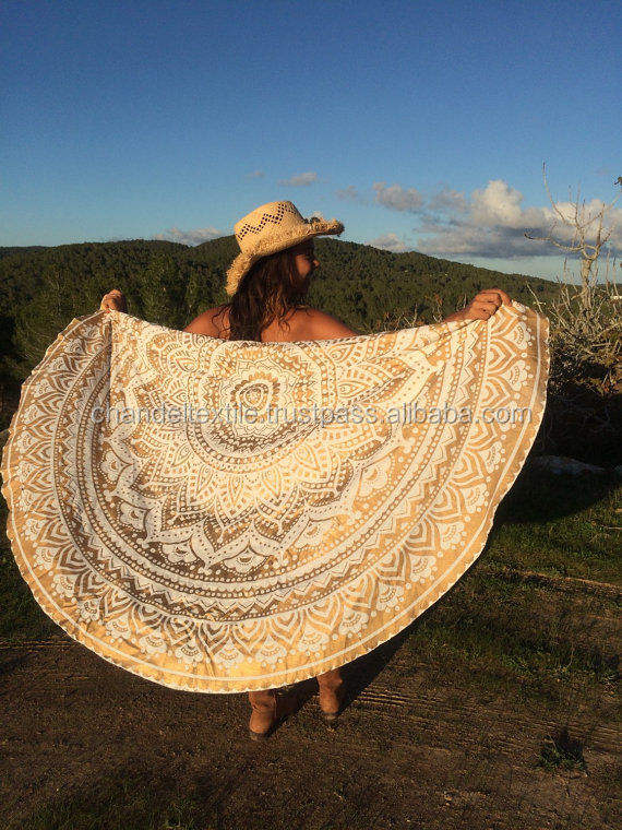 Ethnic Gypsy Style Ombre Mandala Wall Hanging Tapestries Round Beach Yoga Mat Printed Pattern Art Decor and Beach Mat