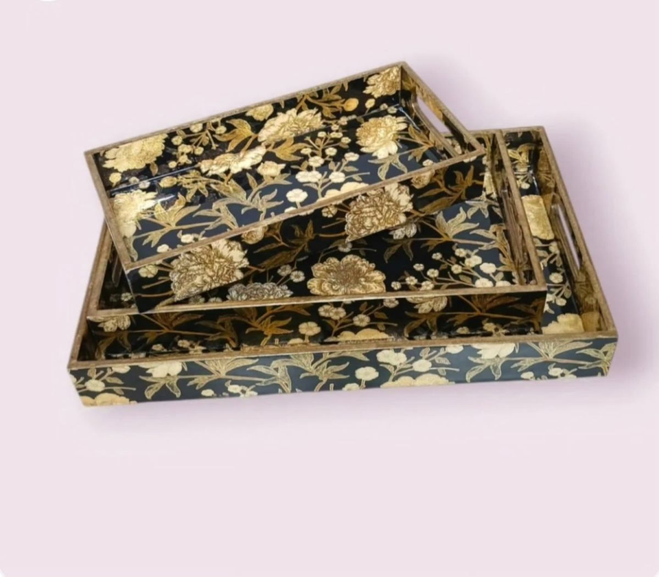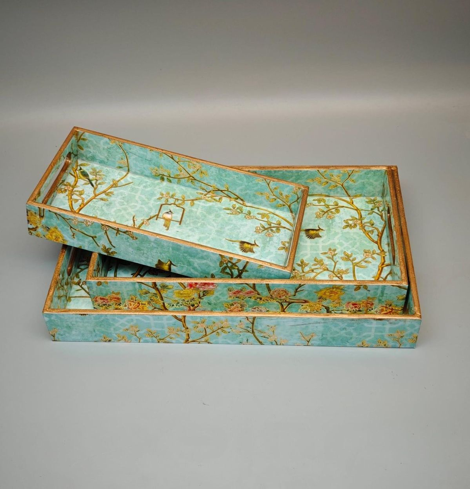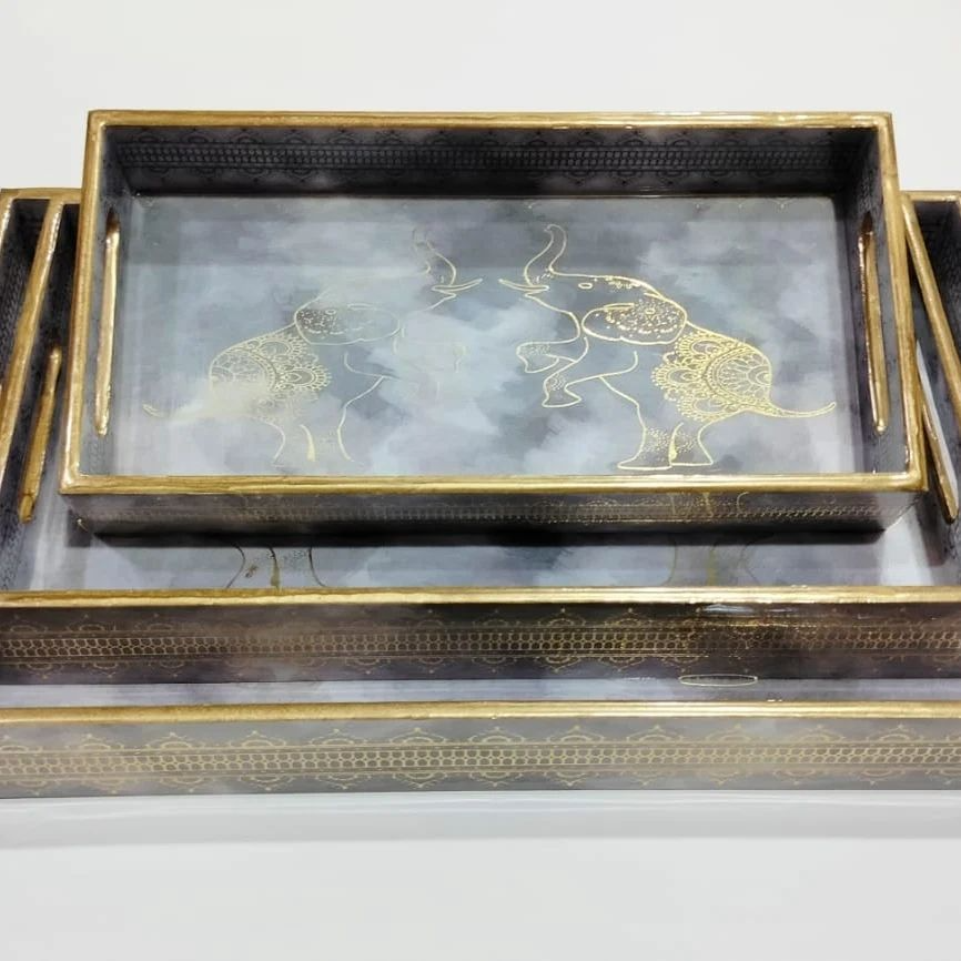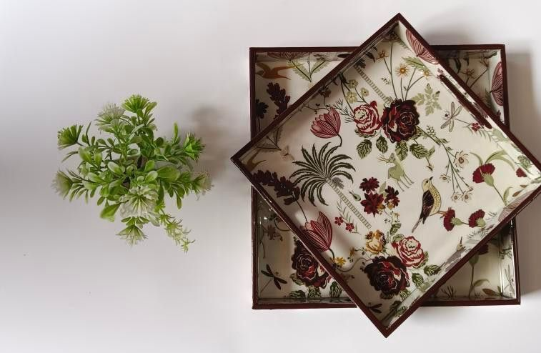 Ethnic Handcrafted Wooden Meena Printed Tray Indian Style Decorative Serving Tray for Wedding Kitchen Dining Home Decoration