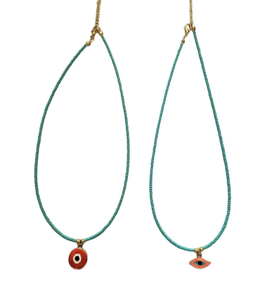 Ethnic Handmade Seed Bead Pendant Necklace Sky Blue Crystal Diamond Pearl Religious Fashionable Jewelry Chunky Wholesale