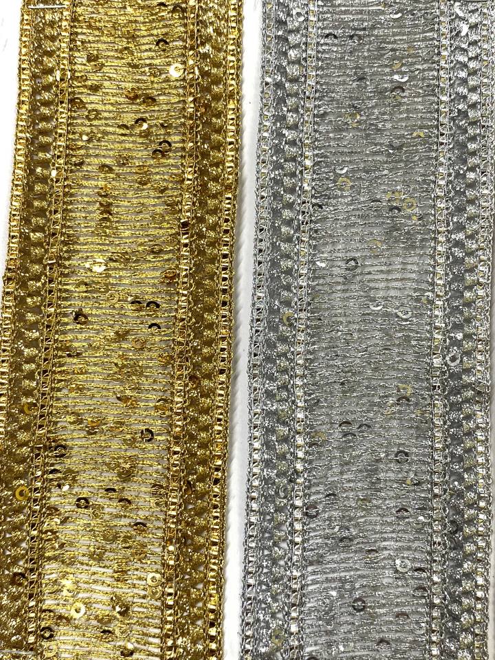 Ethnic Indian 2.5\" Sequin Gold Lace Chemical Gimp with Beads and Tassels for Women's Clothing Wholesale Deals