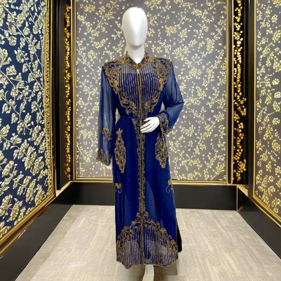 Ethnic Islamic Woman Clothing Dubai Beaded Sleeve Ramadan Jilbabs Kaftans Abaya Muslim Modest Dress Hand Embroidery Evening Wear