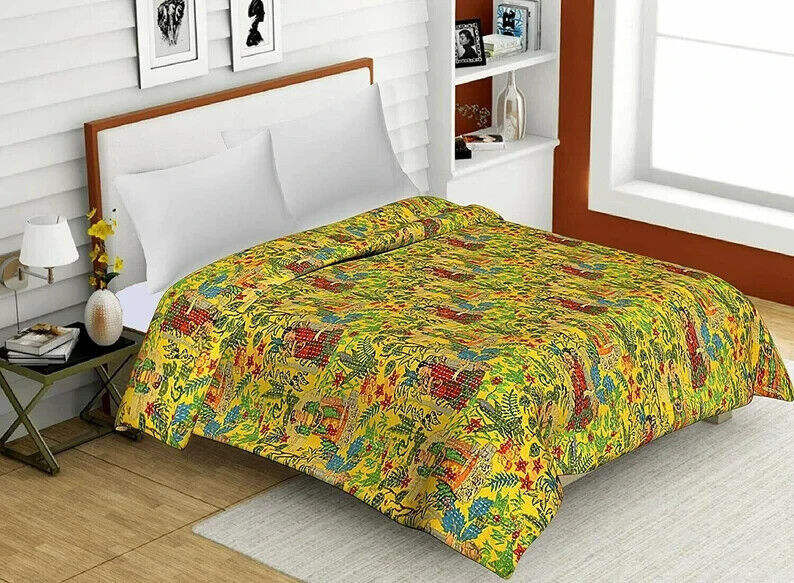 Ethnic Kantha Quilt Cotton Bedspread Handmade Blanket Farida Bedcover Gudari for Living Room Bohemian Home Decorative