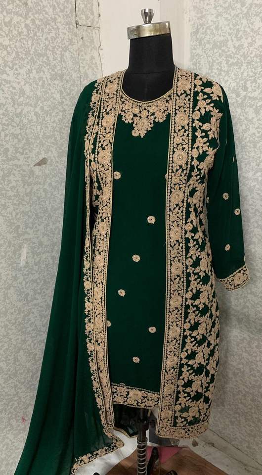 Ethnic Muslim Chiffon Evening Party Dress & Matching Dupatta With Heavy Embroidery Indian/Pakistani Style by Qjimpex
