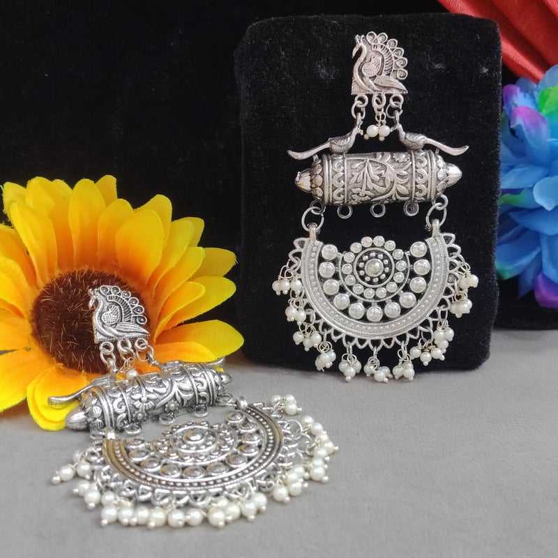 Ethnic Oxidised Silver Color Bohemian Peacock Style and Pearl Dangler Earrings for Women and Girls Perfect For Every Occasion