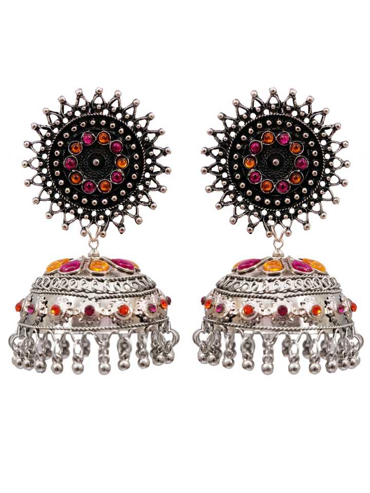 Ethnic Oxidised Silver Multicolor Jhumka Earrings