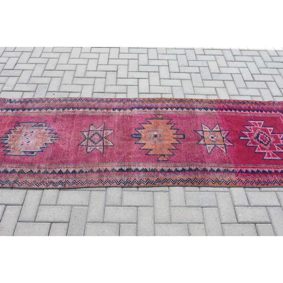 Ethnic Pink Black Wool Eco Friendly Medium Pile Rug 2.7 X 9.5 ft Classic Turkish Style Patchwork Rectangle Dining Room Bedroom