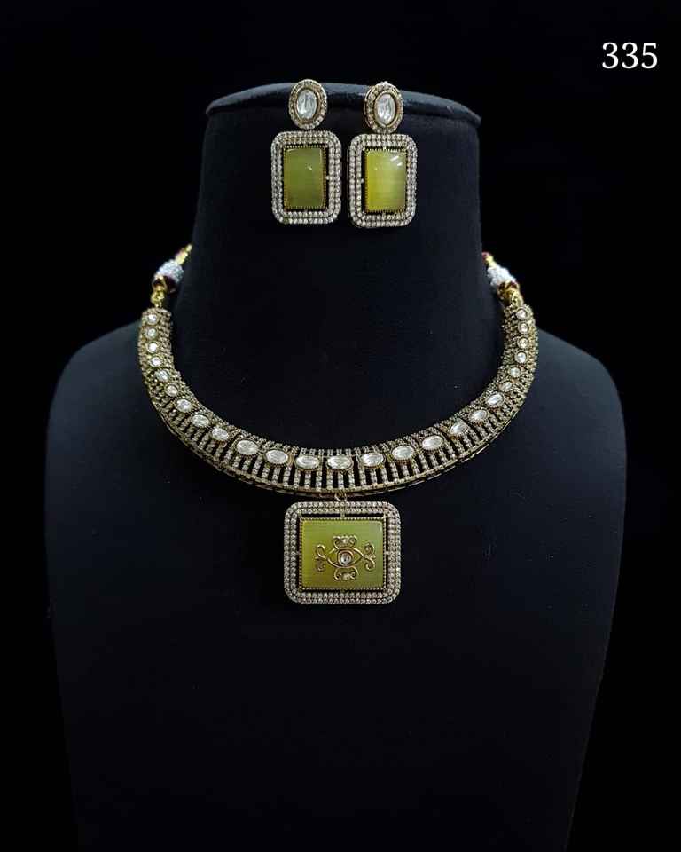 Ethnic Quality American Diamond Choker Fashion Designer Necklace Set Indian Fashion Jewelry for Women and Girls' Party Wear