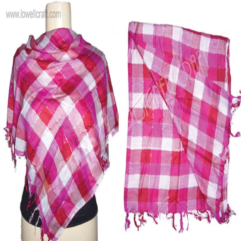 Ethnic Style Cotton Square Scarf with Unique Design Cotton Linen Scarf Checked Style