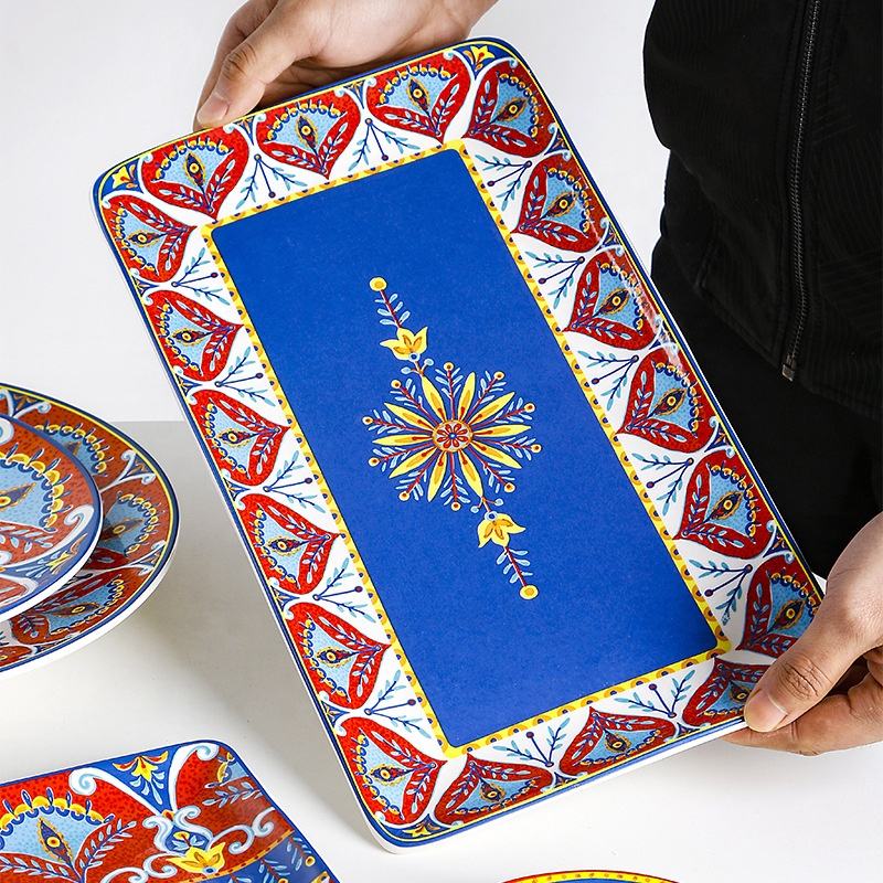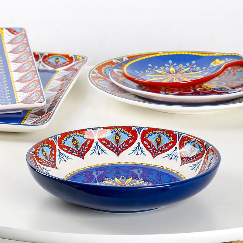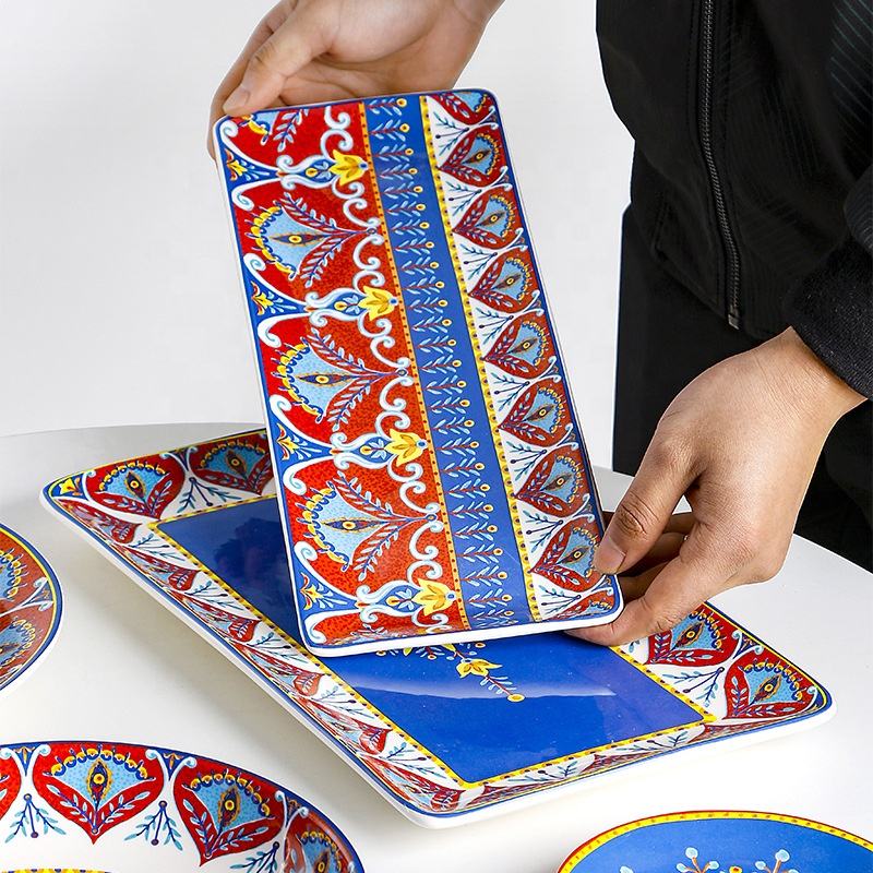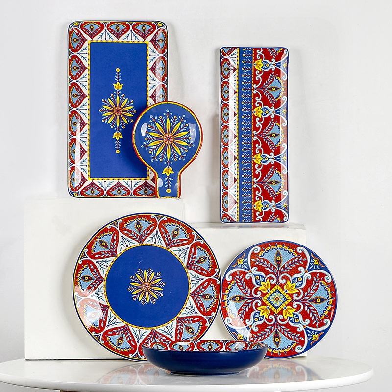 Ethnic Style Kitchen Home Decoration Underglaze Hand-painted and Decal Ceramic Dinner Tableware