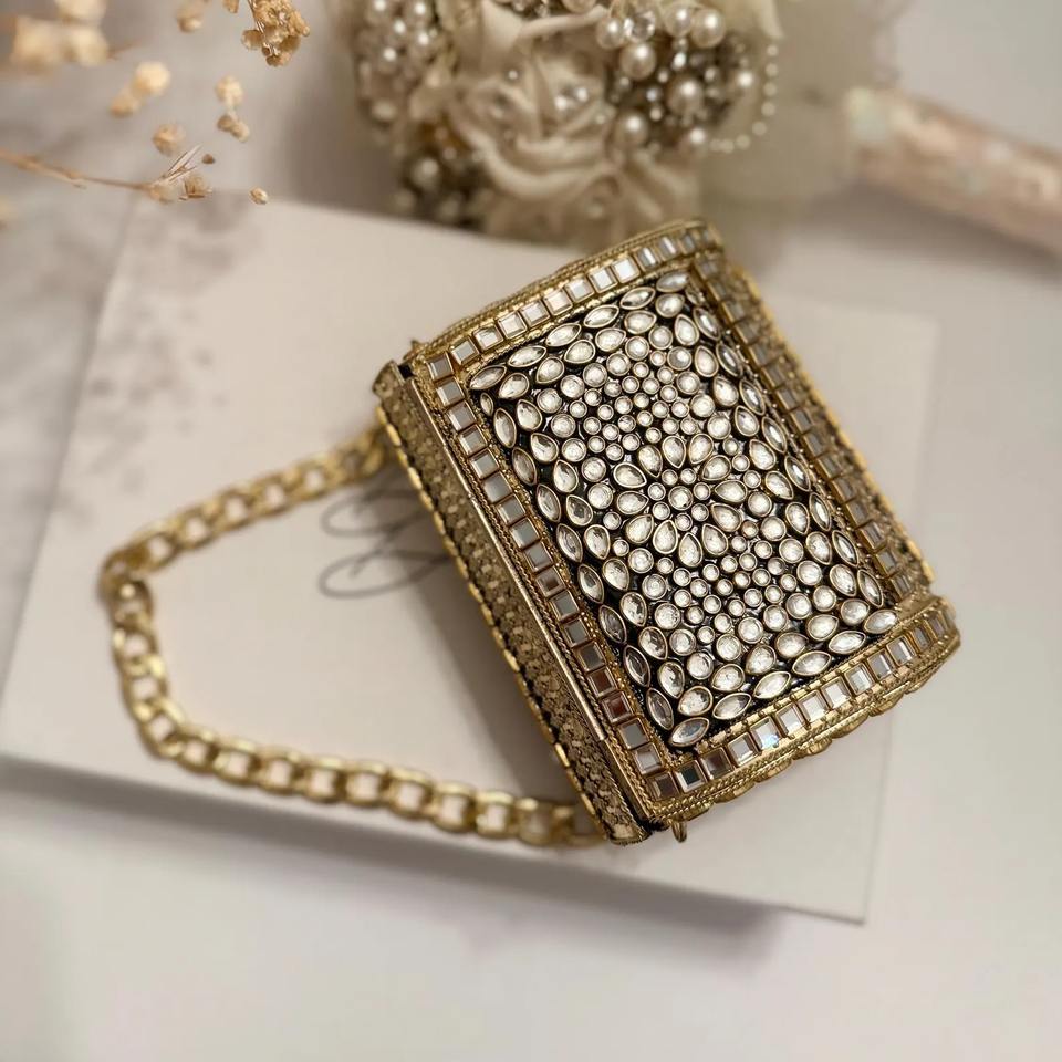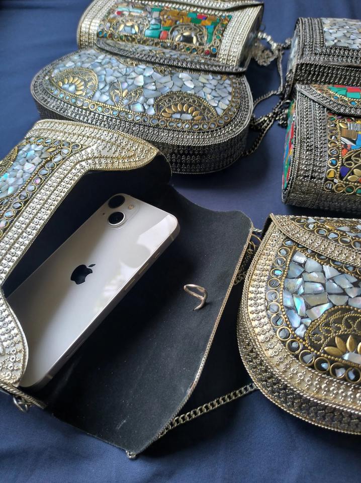 Ethnic Style Mosaic Clutch Bag with Colorful Handmade Detailing Luxury Mosaic Bridal Clutch with Intricate Tile and Stone Work