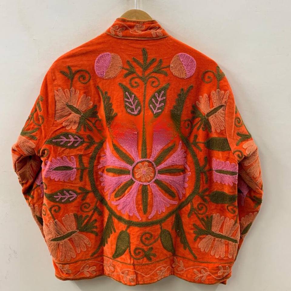 Ethnic Style Velvet Suzani Winter Embroidered Short Jacket | Festival Coat | Uzbek Duster Outerwear