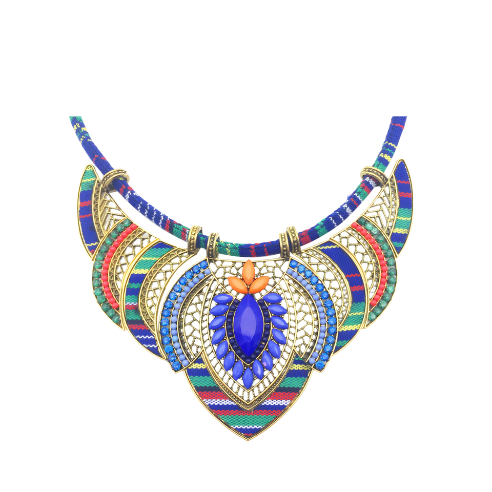 Ethnic Style Women's Festival Tribal Beaded Bohemian Choker Costume Necklace Chunky Blue Color Collar Necklace for Party