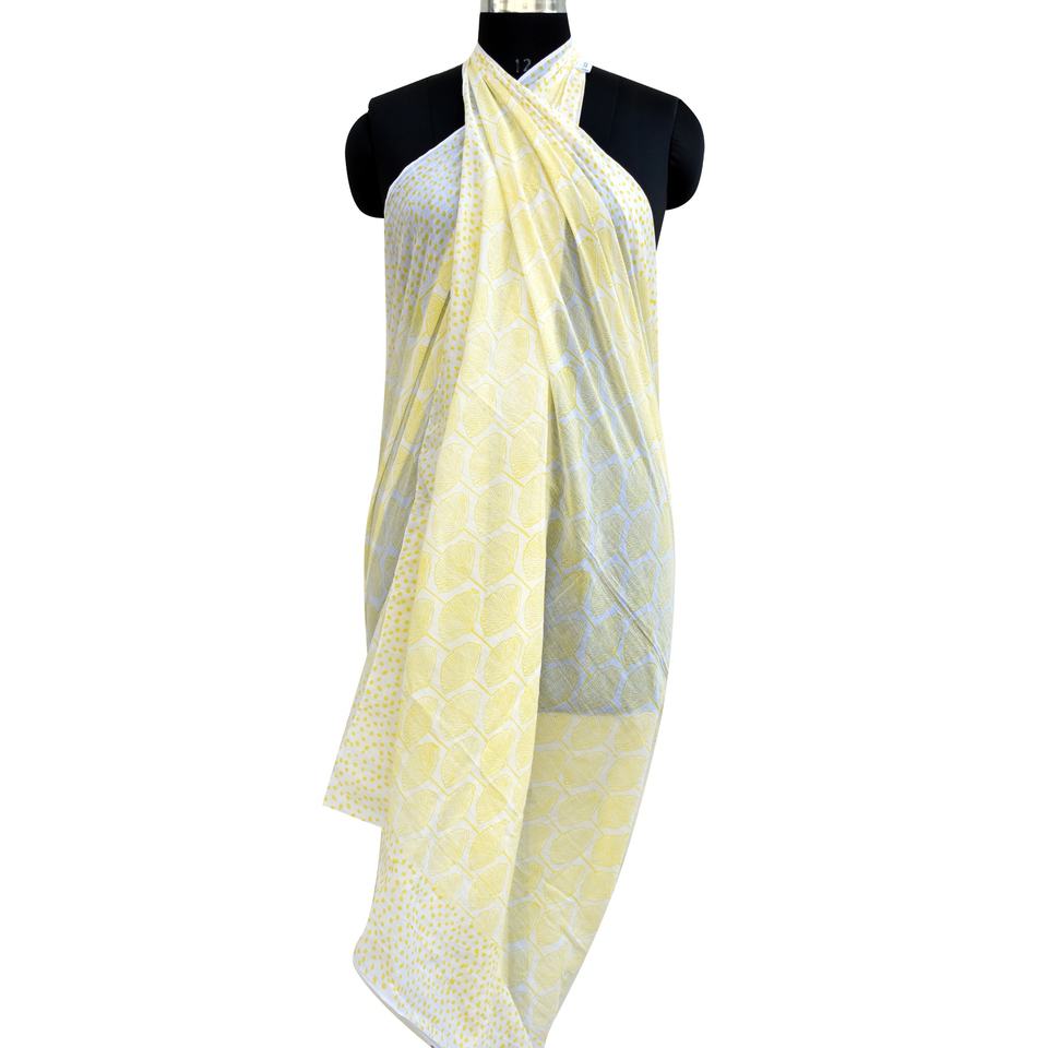 Ethnic Summer Floral Printed Eco-friendly Hand Block Print Adult Beach Cover Ups Handmade White Cotton Voile Traditional Shawl