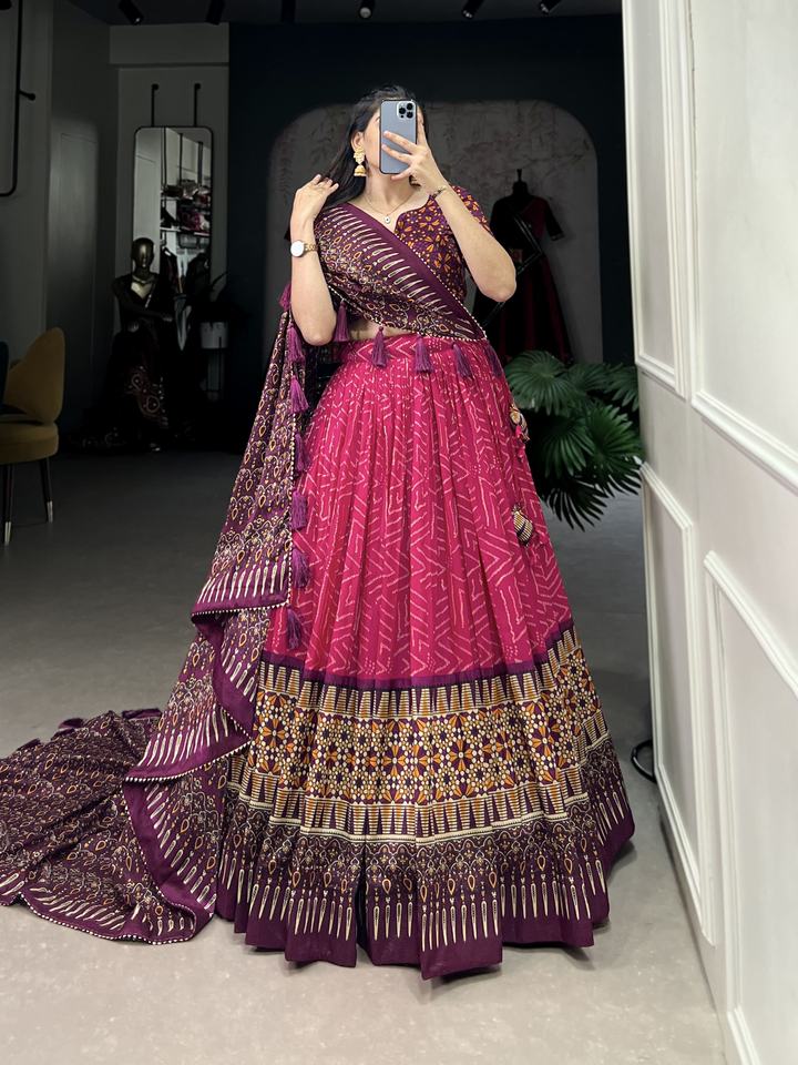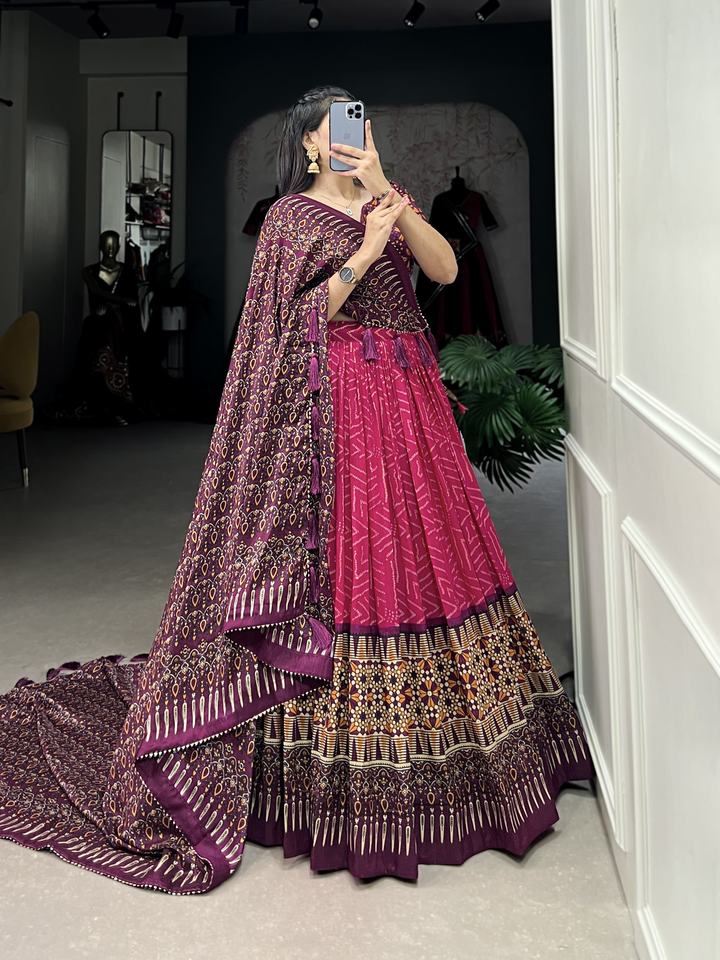 Lehenga Work:Bandhej And Ajarakh Print