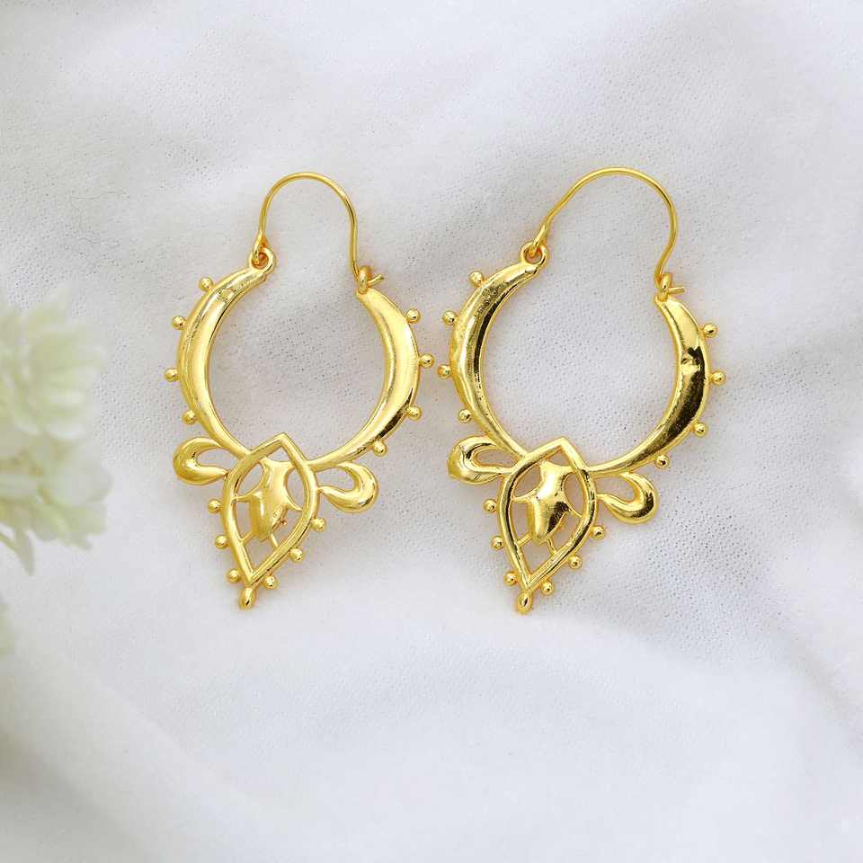 Ethnic Tribal Designer Hoop Earrings Dainty Mandala Brass with Pearl Popular Fashion Drop Ear Jewelry Gift for Her
