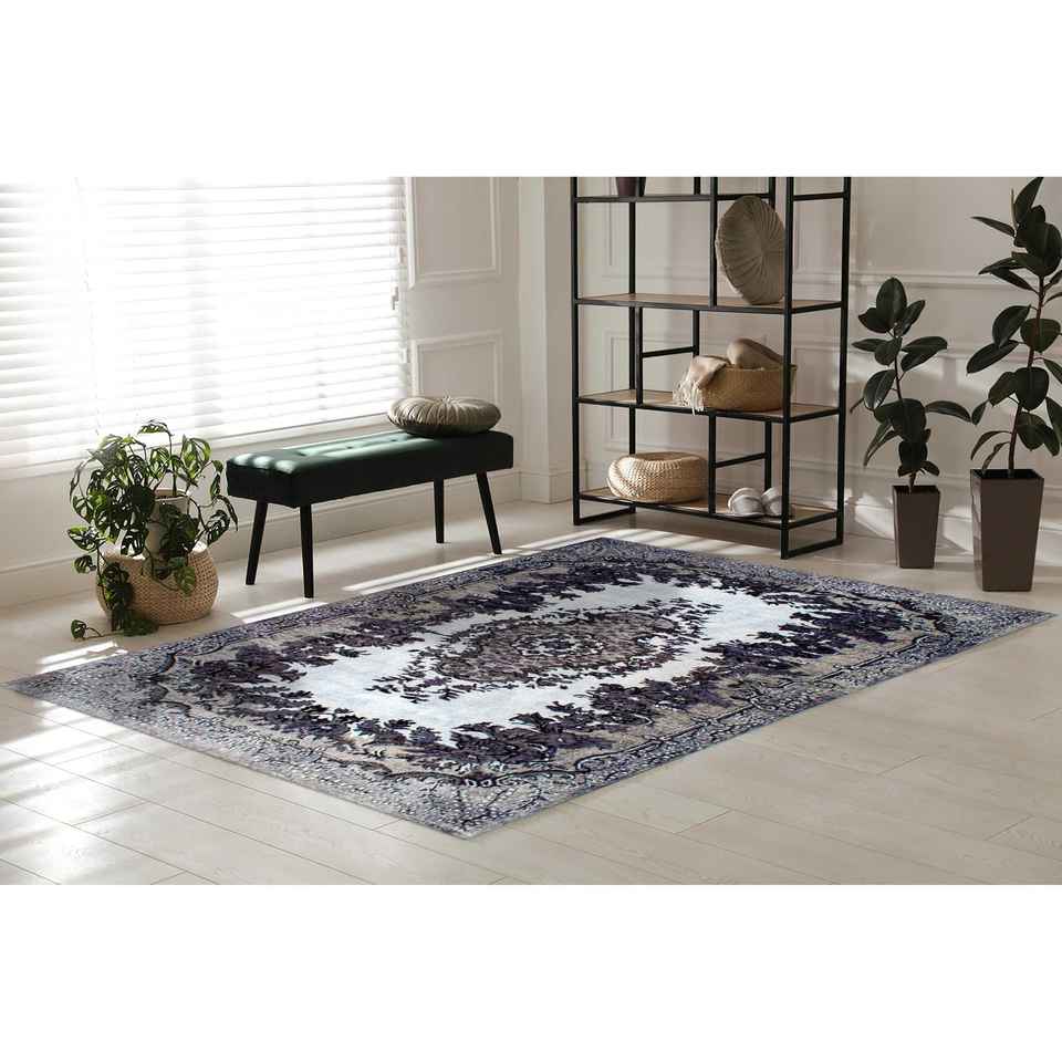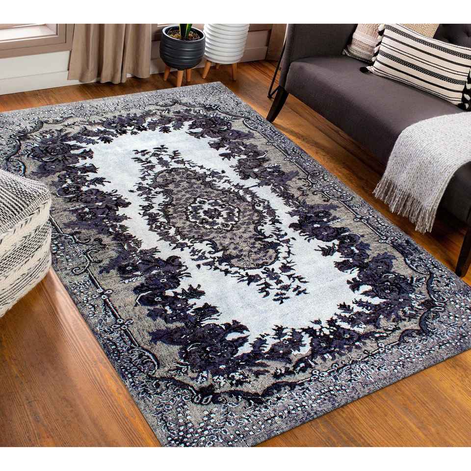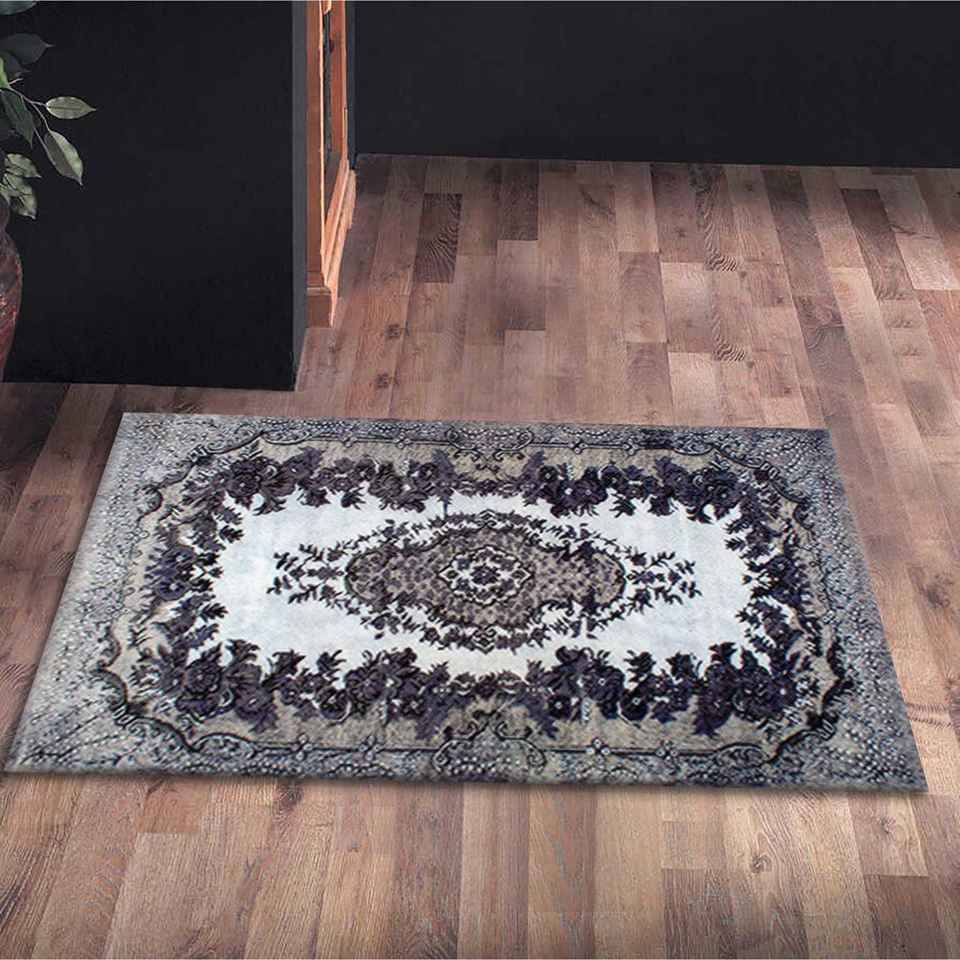 Ethnic Turkish Style Black Medallion Chenille Printed Rug,Nonwoven Thin Rug