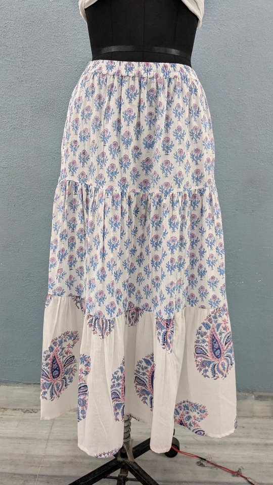 Ethnic Women's Long Maxi Skirt Hand Block Print Floral Cotton Casual Style Elastic Breathable Sustainable-Handmade Nonwoven